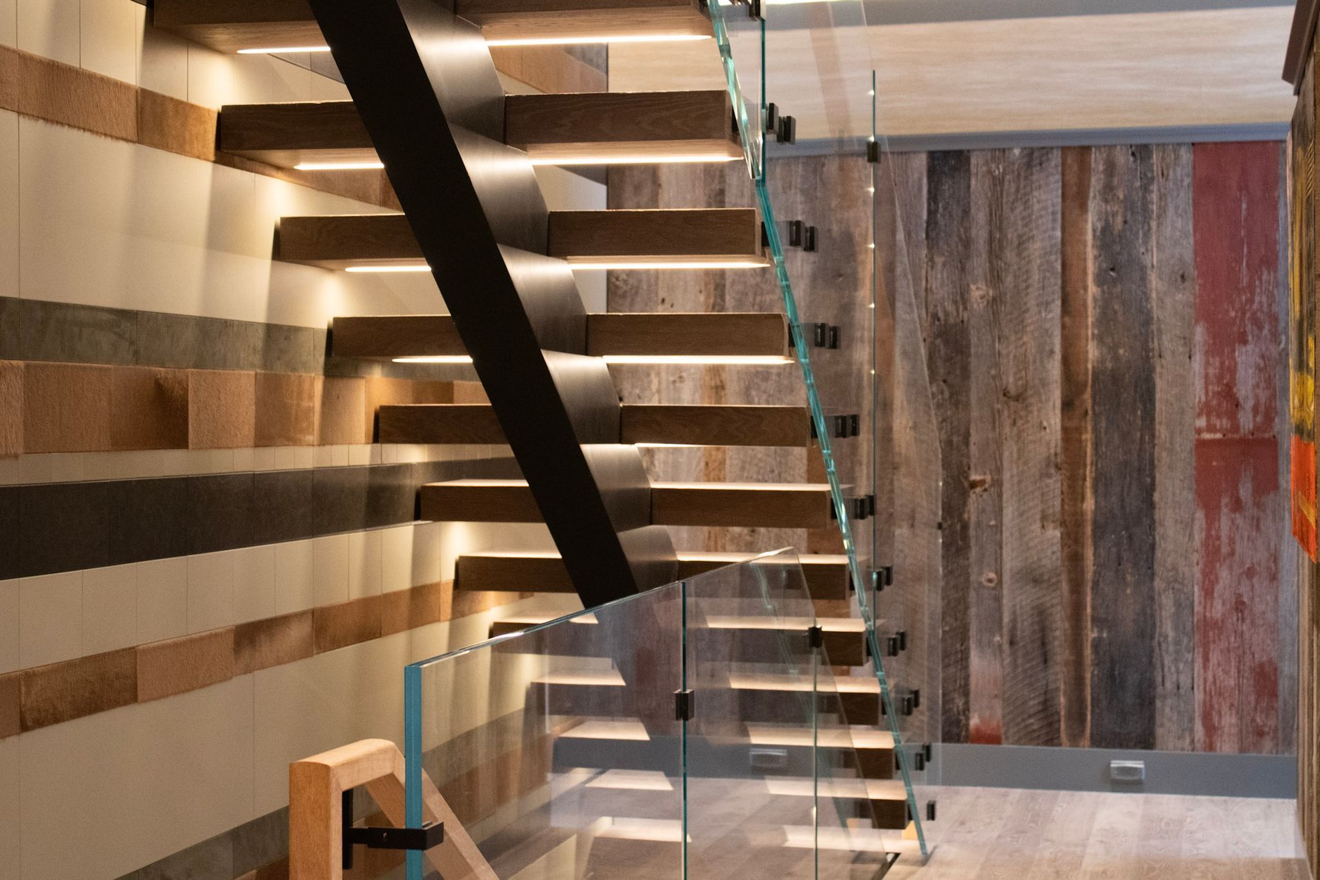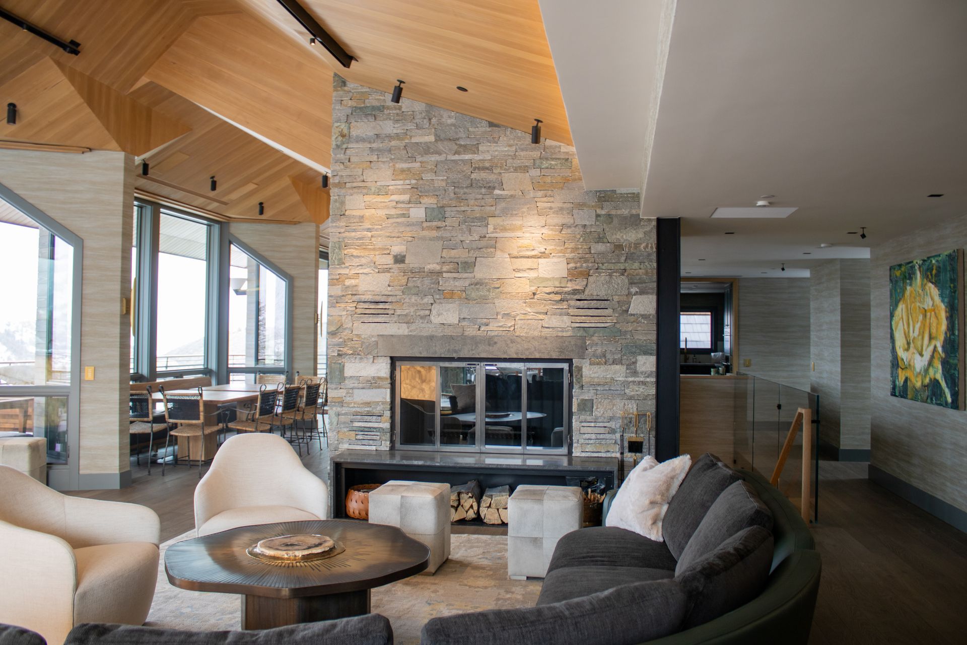 A historic restoration of an original Gunnar Birkerts designed home. Updates included a complete interior renovation and implementation of a more modern style while also highlighting the Rocky Mountain scenery that frequently backdrops rooms within the home. Interior additions included a custom, backlit onyx bar, reclaimed barnwood paneling throughout the home, and unique floating staircases, all while maintaining Birkerts' original design layout.