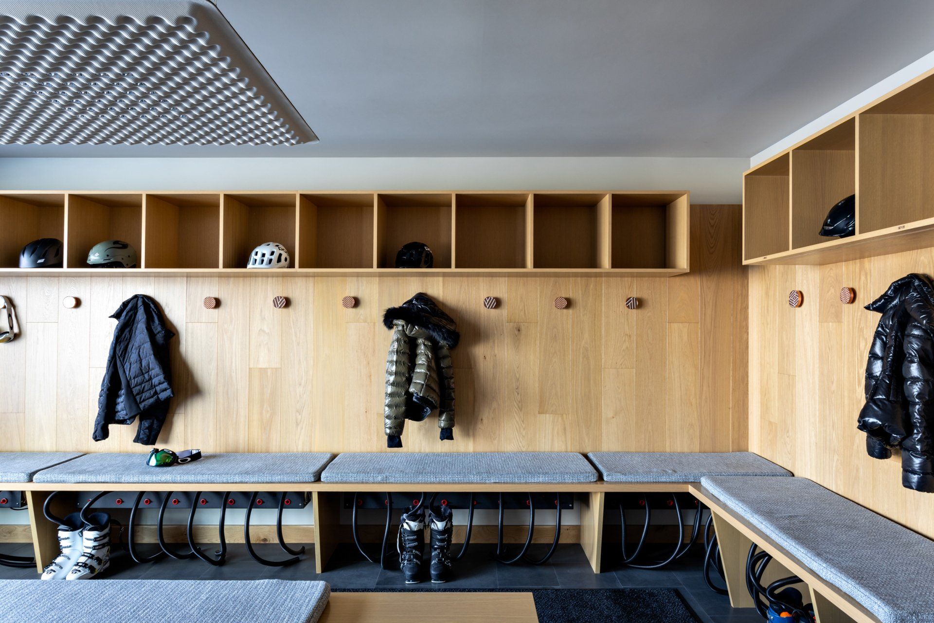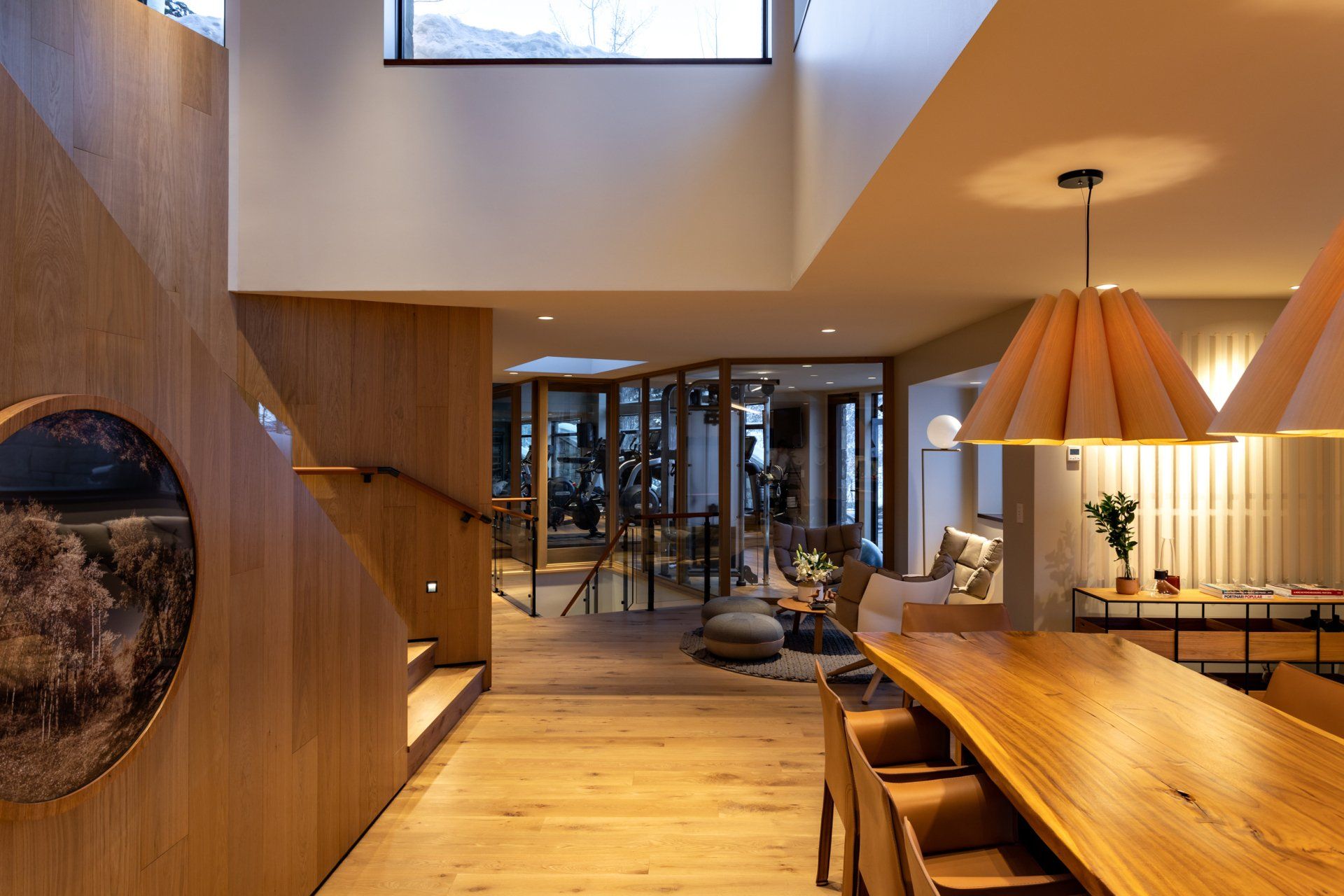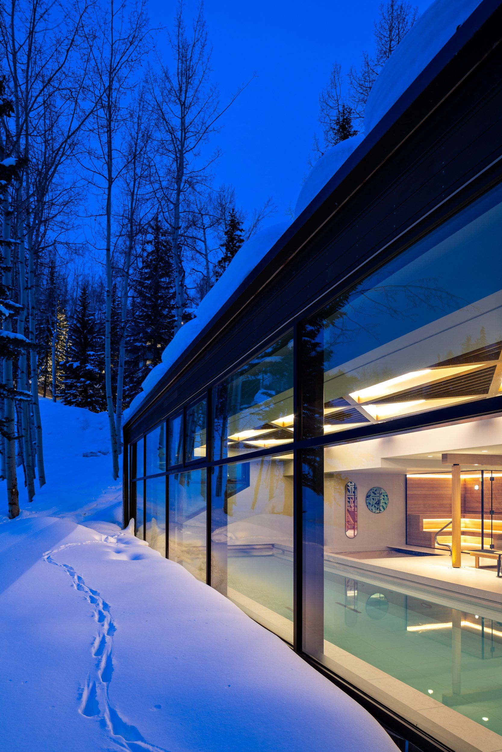 This 2019 complete renovation of a 1970s concrete home modernized the interiors of the ski-in-ski-out residence, transforming the space for an international client looking to accommodate their multi-generation family. The project included the addition of a sophisticated indoor pool, gym and sauna, involving extensive and creative concrete work. Luxury finishes and detailed woodworking make this top-of-the-line custom home a uniquely modern, yet comfortable mountain retreat.
